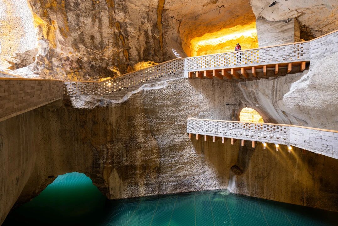 浙江台州的“黄岩石窟”采用“最小干预”的原则,保留了矿洞的原始地貌,在其中举办光影展、艺术展及Live演出,甚至利用天然洞穴打造水帘剧场,实现了自然与艺术的完美结合。