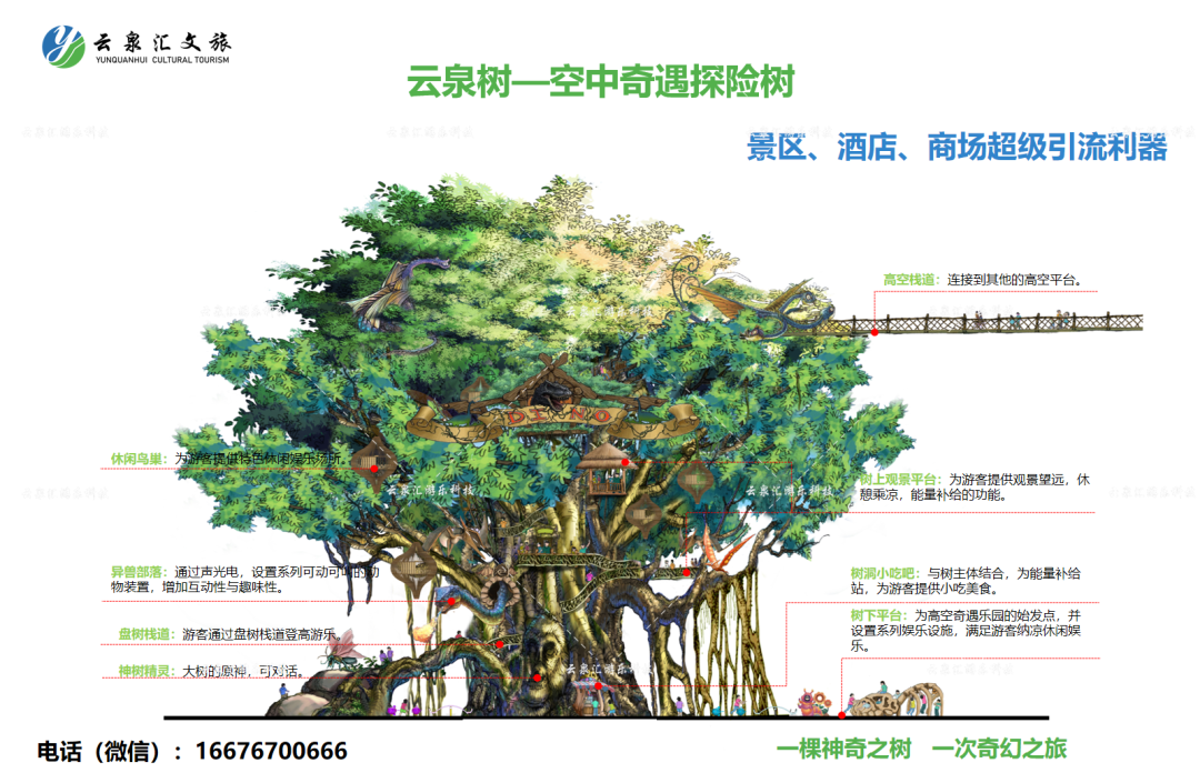 云泉树系列产品的优势在于其创新的多元业态融合——通过"乐活+康养+生态+游乐+自然"的结合,为传统景区、温泉、酒店等项目提供新的升级解决方案,以“轻量投资、高效回报、集约空间、极致体验”为核心优势,帮助老项目突破瓶颈,实现“投资小、收益快、省空间、超好玩”。